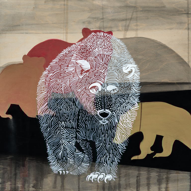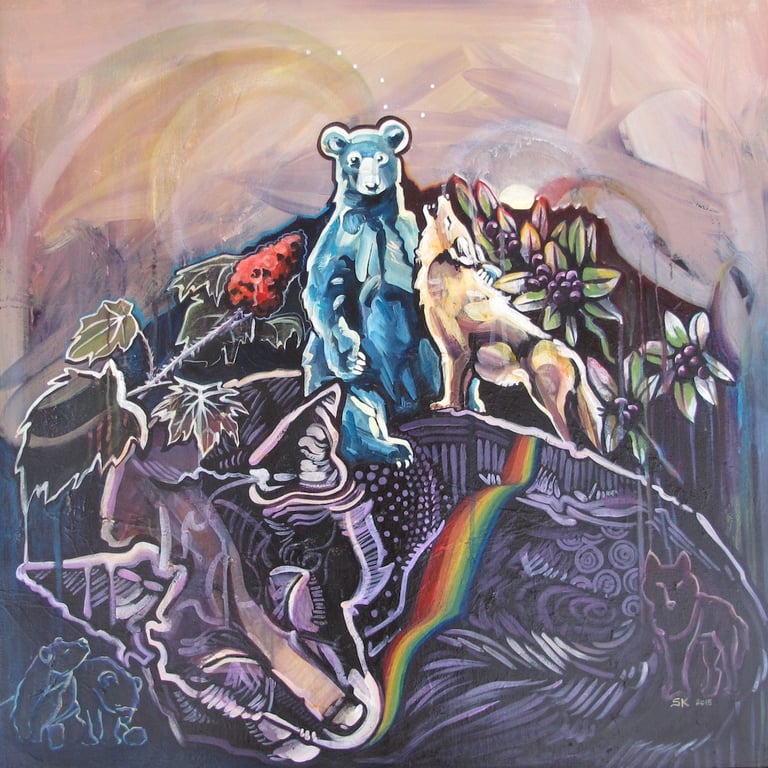 Her work focuses on flora and fauna, using pattern, colour, and layered composition to explore relationships within ecosystems. Drawing from time spent in regions such as the Yukon and Chilcotin, her practice is informed by direct experience with landscape, wildlife, and seasonal change.