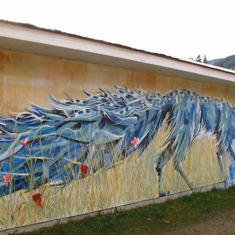 I have created and contributed to several public murals across British Columbia, including work with Nelson MuralFest, community murals in Winlaw, BC, and assisting Indigenous artist Ric Gendron with a Nelson mural. I have also exhibited widely in public galleries, with work grounded in landscape, wildlife, and place-based themes.
