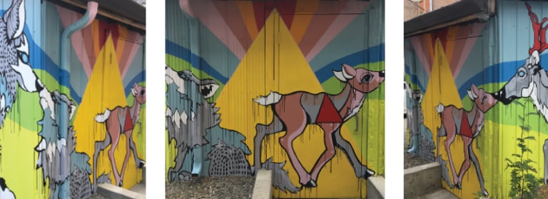 4. Mountain Memories mural, 3 sides panorama, Nelson International Mural Festival